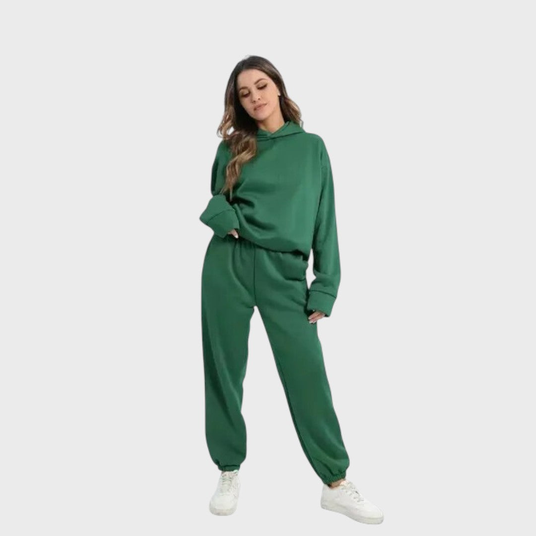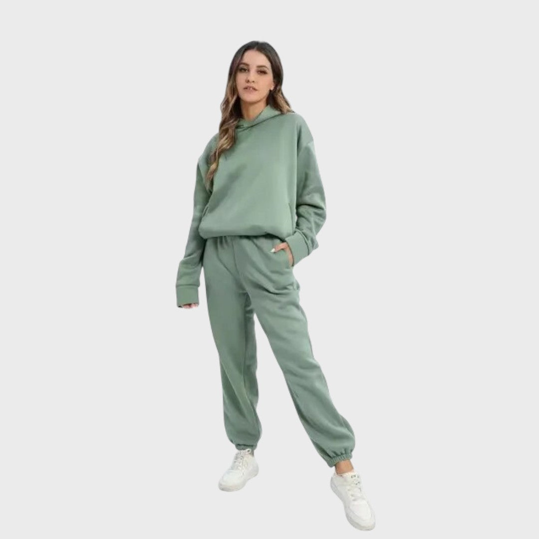 Tėkmė | Moteriškas komplektas su gobtuvių megztiniu ir treninginėmis kelnėmis