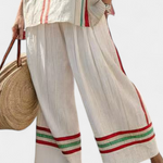 Įkvėptas jūrinio vėjo ir gyvybingų vasaros tonų. Daisy komplektas natūralios bazės su raudonomis ir žaliomis juostomis sukuria pusiausvyrą tarp klasikinio ir linksmo, siūlydama atsipalaidavusią su identitetu ir charakteriu.