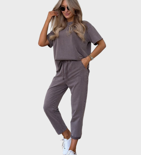 Kasdienis komplektas su marškinėliais ir jogger kelnėmis