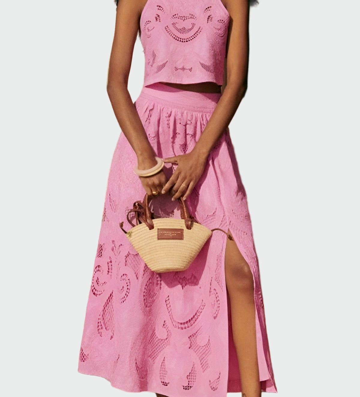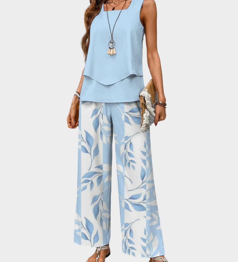 Vasaros Komplektas su Rankovių Mėgstiniu ir Platėjančiomis Kelnėmis su Raštais