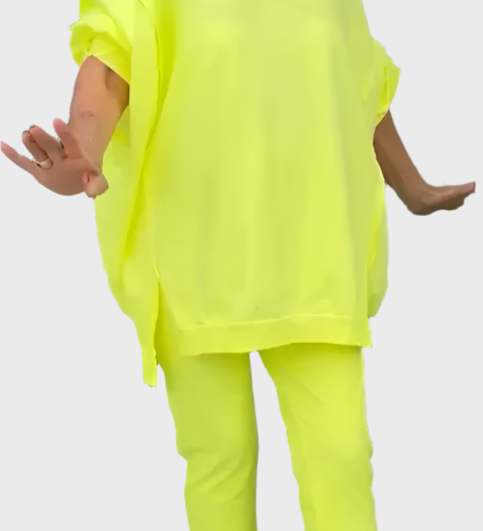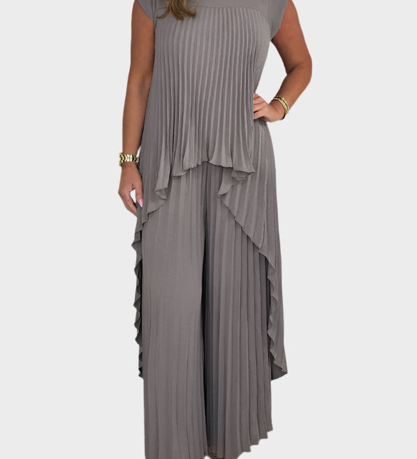 Rinkinyje su Faltuotu Viršumi su Trumpomis Rankovėmis ir Nereguliariu Midi Ilgiu, Kelnės su Platomis Apačiomis ir Elastinga Juosmeniu