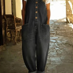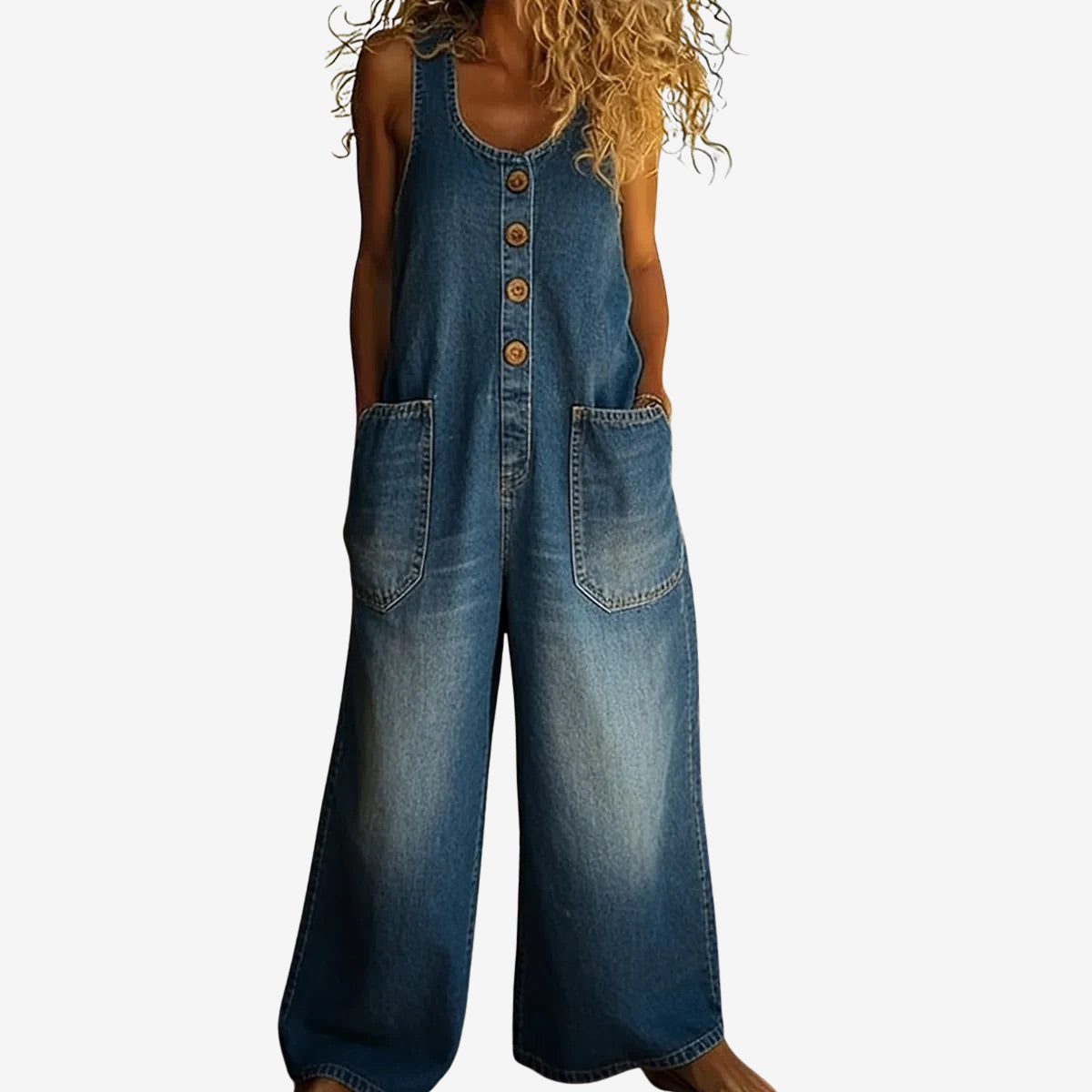 Tik įsivaizduokite švelnų, kvėpuojančio medvilninio džinso prisilietimą prie odos, kai laisvai judate saulėtą dieną. Dabar nustokite įsivaizduoti – šis laisvas, „vintage“ stiliaus skalbtas kombinezonas paverčia neįpareigojantį komfortą jūsų kasdiene realybe.
