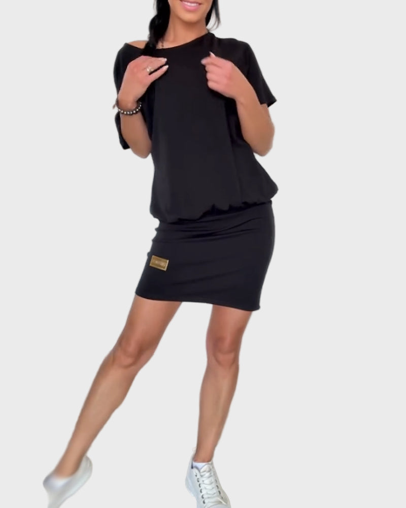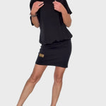 Ši mini suknelė juoda spalva derina komfortą su elegantišku stiliumi. Jos laisvas dizainas su trumpomis rankovėmis daro ją idealia kasdienėms išvaizdoms ir neformaliems pasivaikščiojimams. Puikiai dera su sportbačiais, kad sukurtumėte modernią ir jaunatvišką pageidavimą.