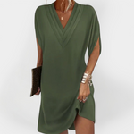 Mūsų mėgstama laisva suknelė su V formos iškirpte yra tobulas komforto, elegancijos ir laikino stiliaus derinys – sukurtas moterims, kurios nori jaustis gražiai ir laisvai kiekvieną dieną akimirką. Jos laisva linija ir minkšta medžiaga daro ją idealia visoms jūsų kasdienėms išvykoms.
